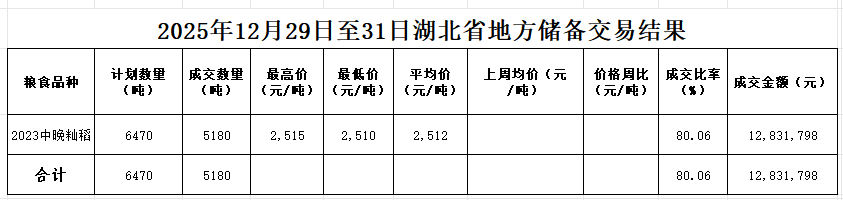 本周(2025年12月29日—12月31日)湖北無國家政策性糧食投放。